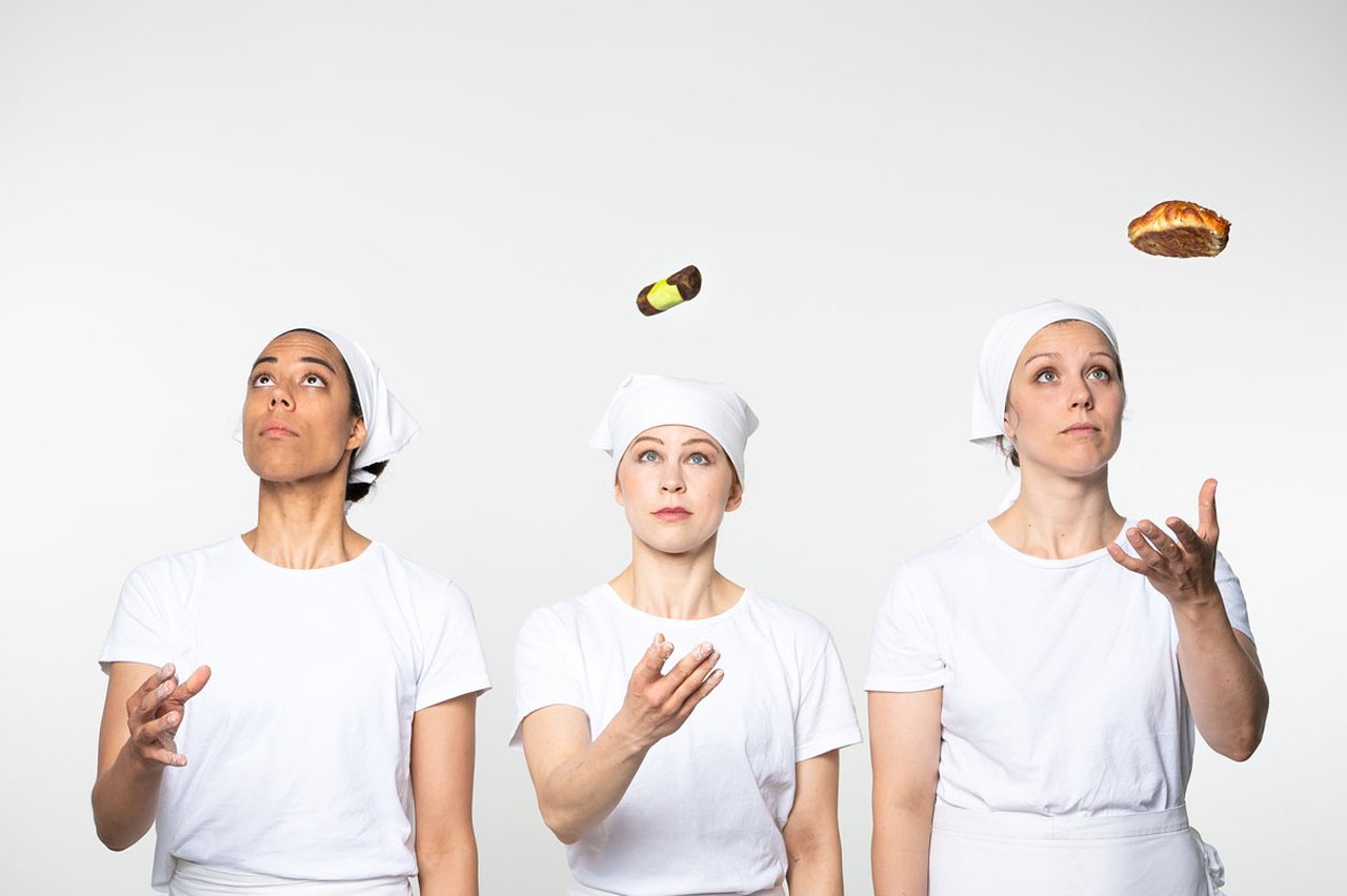 Tre sockerbagare skapar bakverk med kavlar, dans och deg. De dansar fram små Karlsbaderbullar och snurrar fram en lyckad jäsning. I denna humoristiska föreställning möts dikt och dans bland prinsesstårtor och sockertoppar. I en dansverkstad får barnen själva prova på att jäsa, vispa och vara deg.