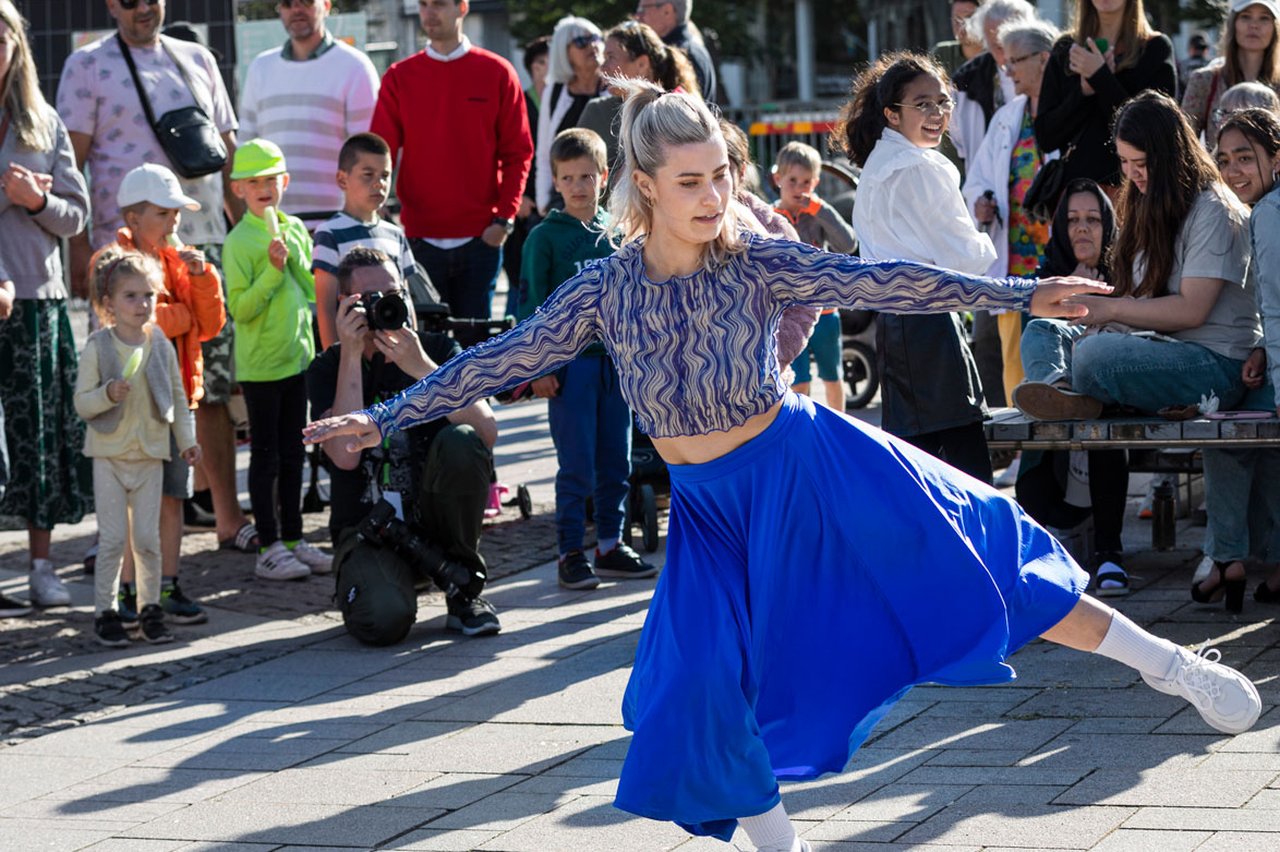 Två dansare tar oss med på en resa genom ett kroppsligt utforskande av färgen blå i Falkenbergs bibliotek.